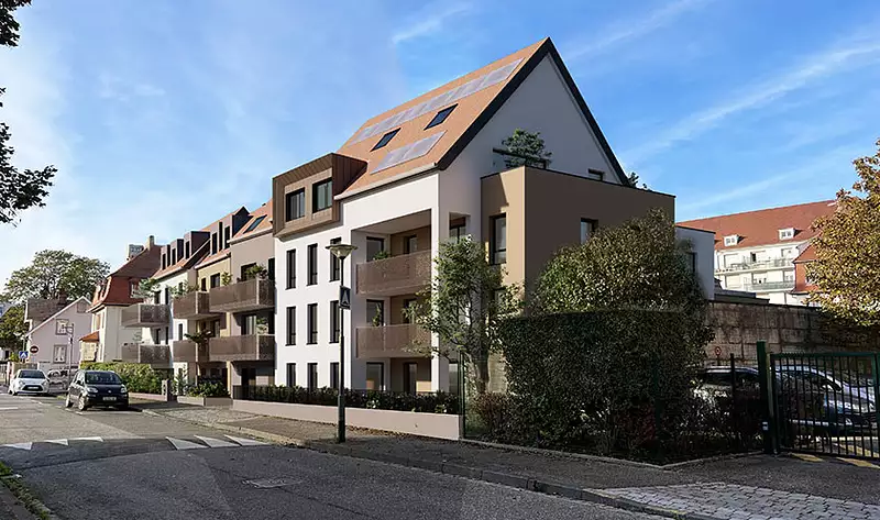 Située au cœur de Strasbourg, dans le quartier prisé du Neudorf, la résidence "Le Clos Neudorf" offre un cadre de vie idéal. Composée de deux bâtiments de 20 appartements neufs, du studio au 5 pièces, cette résidence intimiste propose des logements avec balcons ou terrasses et jardins privatifs. Idéal primo-accédants : Résidence éligible à la TVA réduite 5,5 % (sous conditions) et cumulable avec le Prêt à Taux Zéro ! Ou profitez du LLI (TVA réduite à 10%, crédit d'impôt sur la taxe foncière, une rentabilité sécurisée par une forte demande locative, un prix d'acquisition inférieur au marché) pour investir à Strasbourg avec Bouygues Immobilier, votre partenaire de confiance.