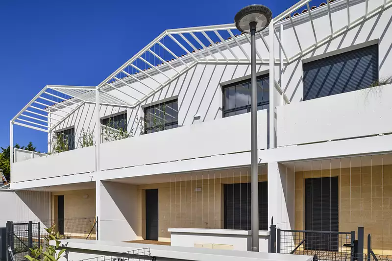 TALENCE, PRIX D’EXCELLENCE… Aux portes de Bordeaux, Talence compte parmi les communes prisées de la Métropole. Son cadre de vie paisible s’agrémente de multiples espaces naturels, dont le bois de Thouars de 60 hectares, des parcs et vignes en son cœur. Ville universitaire avec l’un des plus vastes campus d’Europe et de grandes écoles, Talence dispose aussi d’infrastructures sportives, scolaires et culturelles de premier plan propices à une vie citadine harmonieuse. Parfaitement connectée, elle bénéficie de l’ensemble des solutions de transport de Bordeaux Métropole. Loin de la densité et de l’agitation urbaine, cette nouvelle résidence profite de la sérénité d’un quartier résidentiel et arboré. Cette adresse est également celle de la proximité : commerces, services, écoles, supermarchés, bus… tout reste accessible à moins de 10 minutes à pied. TEL UN SECRET BIEN GARDÉ Composé de seulement 12 appartements et 5 maisons, le tout forme un ensemble confidentiel discrètement intégré à son environnement. Sobres et lumineuses, les façades alternent parements de pierre et enduits clairs. Des toitures en tuiles canal traditionnelles ou bac acier plus contemporain les couronnent avec élégance. De subtils détails soulignent cette architecture intemporelle : des marquises abritant les entrées, des auvents ou pergolas en surplomb des terrasses, les menuiseries, volets roulants et portes d’entrée en aluminium… Cette résidence dévoile aussi un traitement paysager délicat tel un cocon verdoyant qui se prolonge jusque sur les bâtiments à la faveur de plantes grimpantes le long de câbles disposés à cet effet. - À 10 minutes à pied de la station Peixoto - Tram B (centre de Bordeaux en 15 minutes). - À 17 minutes en voiture de l’aéroport de Bordeaux-Mérignac. - À 13 min en voiture de la gare TGV/LGV de Bordeaux-Saint-Jean. - À 17 minutes en voiture du cœur de Bordeaux (place Gambetta). DES BIENS D’UNE QUALITÉ RARE ! De 3 pièces duplex à 5 pièces, ces logements combleront les familles et les amoureux des grands volumes. Tous les intérieurs se démarquent par une luminosité exceptionnelle grâce aux dispositions traversantes, voire aux triples orientations. Des plans idéalement conçus, de nombreux rangements pour libérer l’espace, de généreux extérieurs, des suites parentales avec salle d’eau attenante… tout participe à un confort résidentiel hors du commun et chaque typologie réserve de belles surprises ! DES APPARTEMENTS AUX AIRS DE MAISONS Au rez-de-chaussée, les appartements traversants de 4 pièces disposent de 2 jardins avec terrasses, de part et d’autre, et d’un accès individualisé depuis l’extérieur. La cuisine ouverte sur le séjour tire profit d’une implantation en alcôve qui renforce la sensation d’espace. Les 3 pièces en duplex proposent au premier étage une belle pièce de vie avec une partie en double hauteur habillée de larges baies vitrées. Cet espace se prolonge d’une ou deux terrasses, abritées d’une pergola et bordées d’une grande jardinière. Le coin nuit s’invite sous les combles dans une atmosphère cosy et intimiste à laquelle les fenêtres de toit apportent un cachet supplémentaire. L'appartement possède une cuisine équipée et son électroménager. DES MAISONS QUI RIMENT AVEC INDÉPENDANCE ET INTIMITÉ De plain-pied, les maisons de 4 et 5 pièces révèlent des volumes remarquables et des agencements qui préservent l’intimité et les rythmes de chacun. La pièce à vivre donne sur une terrasse protégée d’un auvent vers un grand jardin à l’abri des regards. Pour la plupart, ces grands terrains engazonnés bordent tout le pourtour des villas. Le stationnement aérien se situe à proximité des logements, avec certaines places équipées pour les véhicules électriques, et les 3 locaux vélos offrent un usage pratique au quotidien. LE LABEL NF HABITAT, C’EST QUOI ? Un engagement et un contrôle du promoteur par un organisme tiers et indépendant : L’attestation NF Habitat remise lors de la livraison de votre appartement confirme que celui-ci est conforme aux exigences de la certification NF Habitat. Des logements évalués et construits sur des exigences multicritères : Acoustique : Renforcement de l’isolation acoustique au bruit de choc. Économie d’énergie : Le logement est performant et les systèmes de ventilation sont vérifiés pour apporter un confort thermique. Sécurité et sureté : Pour vous et vos proches, le logement est conçu pour favoriser la qualité de l’air et limiter les risques d’intrusion. Conception fonctionnelle : Plan de cuisine, branchement des équipements, vanne d’arrêt en eau du logement. NF Habitat, c’est aussi une qualité de services et d’information apportés tout au long de votre projet : Des informations sur les dates de livraison de votre logement, l’organisation d’une visite au moment de la pose des cloisons, remise d’un livret du propriétaire qui précise le fonctionnement des équipements.