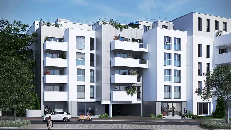 La résidence HARMONIA, à l'architecture contemporaine, s'inscrit harmonieusement dans son quartier et accueille une population variée composée d'étudiants, jeunes actifs et familles, offrant ainsi un potentiel de clientèle diversifié et pérenne. La présence de logements allant du studio au 4 pièces, complétés par deux appartements d'exception en attique, garantit une vie quotidienne animée au pied de l'immeuble.