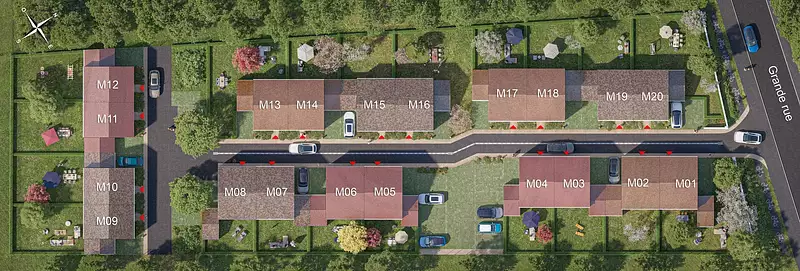 Situées dans un quartier paisible, les maisons neuves de 4 à 5 pièces, pensées pour offrir un cadre de vie fonctionnel et agréable, disposent toutes d'un jardin privatif et de deux places de stationnement : 1 place extérieure et 1 garage fermé.