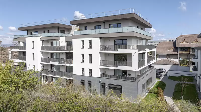 Découvrez les derniers appartements T4 disponibles sur cette résidence, des appartements très lumineux avec grand balcon ou terrasse. La résidence propose de magnifiques logements attiques T4 (maisons sur le toit), dont certains bénéficient d’une vue sur le lac. Garages en sous-sol.