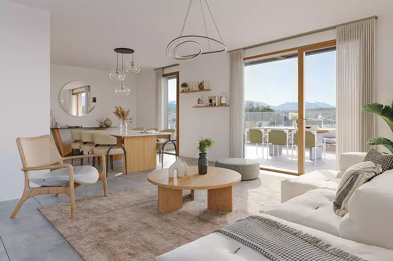 Cette opération à taille humaine se compose de 33 logements, répartis au sein de deux bâtiments élégants, à l'architecture contemporaine parfaitement intégrée à son cadre naturel. Du T2 au T5, chaque appartement a été conçu pour offrir des volumes généreux, une luminosité optimale et de grands espaces extérieurs : vastes terrasses, balcons ou jardins privatifs, véritables prolongements des espaces de vie.