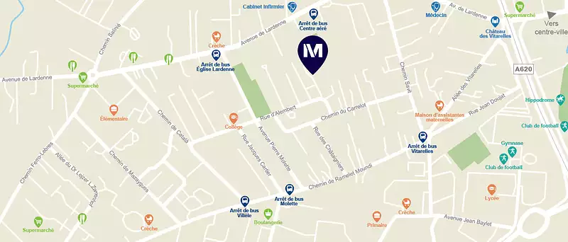 Notre emplacement est un véritable atout. À seulement 15 minutes* en voiture du CHU Purpan et 12 minutes* du site Airbus, les actifs trouveront ici un équilibre parfait entre travail et vie personnelle. Tandis que les familles, elles, profiteront d’écoles accessibles en à peine 3 minutes* et d'une offre complète de commerces à proximité : boulangerie, supermarché, restaurants, primeur accessible en 4 minutes* à vélo.