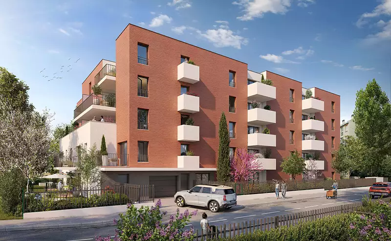 Son architecture contemporaine, inspirée des codes de la Ville Rose avec la brique en parement, affiche des lignes sobres et élégantes. Les balcons et terrasses rythment les façades et participent à son intégration harmonieuse dans le tissu urbain existant.