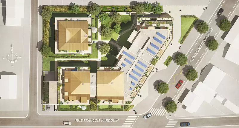 Un projet architectural innovant Un bâtiment conçu pour optimiser la fraîcheur en été, maîtriser les dépenses énergétiques en hiver Des panneaux photovoltaïques installés sur le toit de la résidence assurent une partie de l’autonomie énergétique des parties communes. Cet investissement d’avenir est une réponse efficace aux enjeux environnementaux.
