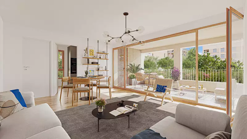 Achetez votre appartement neuf à Vaulx-en-Velin dans un quartier en pleine métamorphose urbaine. Ce programme immobilier neuf Les Nouveaux Constructeurs se compose de deux résidences d'inspiration contemporaine éligible TVA 5,5%. Elles distribuent des appartements neufs du 2 au 5 pièces duplex avec balcon, terrasse ou loggia. Résidence fermée et sécurisée avec parking privatif et beau jardin paysager commun. Programme RE 2020 SEUIL 2025 et respecte le référentiel 2022 Habitat durable de la Métropole de Lyon proposant de nombreux logements à double orientation et de configuration traversante. Commerces (dont moyenne surface alimentaire, La Poste) en rez-de-chaussée. Marché et pôle commercial à deux pas. Crèche, groupe scolaire, collège, parc public, médiathèque, piscine et gymnase à distance piétonne. Arrêt de bus à 60 m. Futur arrêt du tramway T9 (reliant l'arrêt Charpennes au pôle d'échanges multimodal La Soie) à 2 min à pied (mise en service 2026. Source : ). Accès à l'A42 à 1,3 km (en connexion rapide avec le périphérique Laurent Bonnevay).
