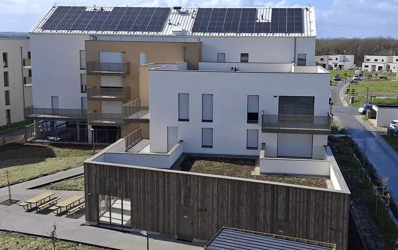 La résidence Les Jardins du Clos Sotin, livrée en mars 2026, est située au cœur d’un nouveau quartier de la ville de Vern-sur-Seiche dans un environnement largement végétal. Elle se compose de plusieurs bâtiments. Le bâtiment situé sur la rue à l’Ouest est plus urbain et en rapport à son environnement bâti tandis que le bâtiment situé à l’Est cherche à faire écho à la campagne environnante.