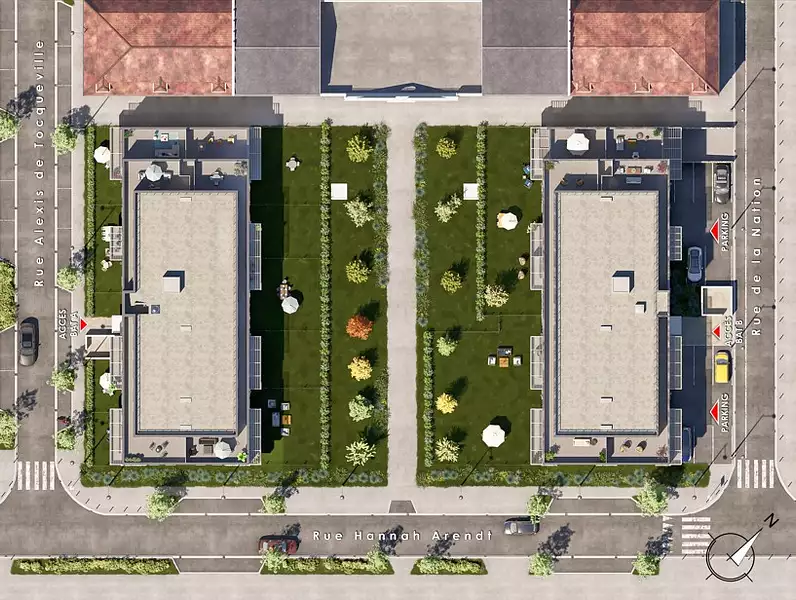 | 2 pièces | 40,89 à 58,34 m² | à partir de 167 500 € | Balcon, terrasse, jardin, parking | Plan et infos |