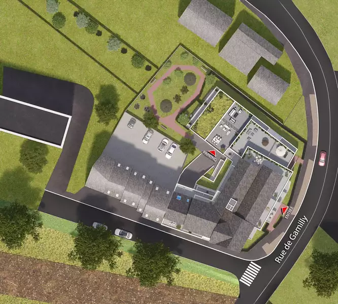 Vous profiterez également d'un parking sécurisé en sous-sol pour chaque appartement, ainsi que d'un local vélo fermé.