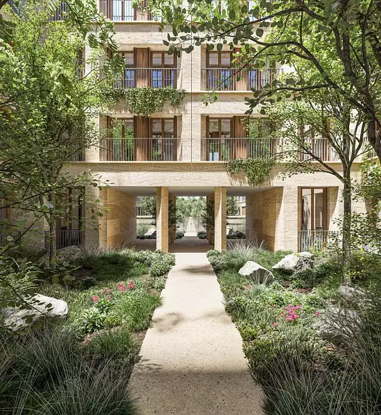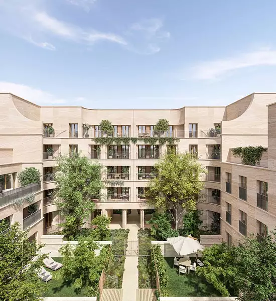 • Façades en pierre massive, patio verdoyant, cœur d'îlot paysager,