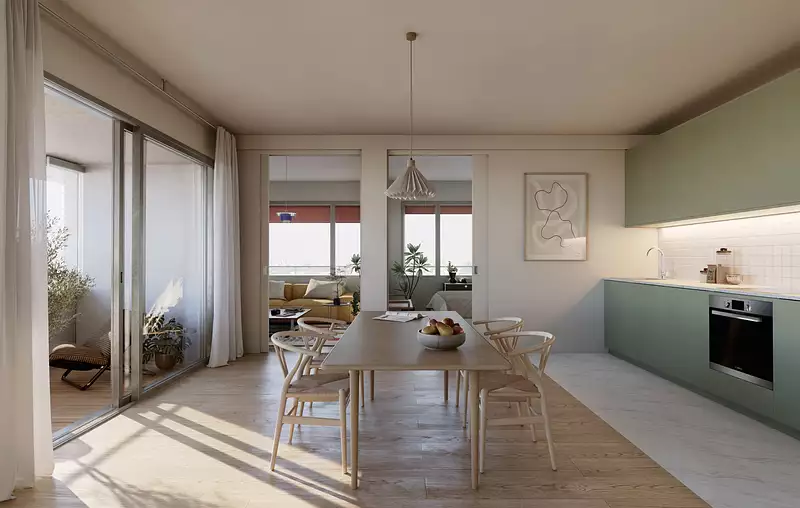 Les appartements, du 2 pièces au 5 pièces, bénéficient de balcons ou terrasses ouvrant sur un coeur d'îlot paysager, avec une jolie place arborée en son centre.
