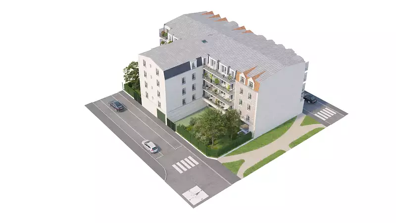 Une résidence à taille humaine, pensée pour le confort : Implantée entre la rue Danton et la rue Gabriel Cordier, Villa Nova bénéficie d'un double accès et d'un environnement paisible, à proximité immédiate du stade Gabriel Roussel. Le voisinage, composé de maisons individuelles, confère au secteur une atmosphère de village francilien très appréciée. Côté rue Gabriel Cordier, un jardin paysager soigneusement aménagé crée un véritable havre de paix. Entouré de haies végétalisées, il est ponctué de cheminements engazonnés menant au local vélos, aux halls d'entrée et aux stationnements.
