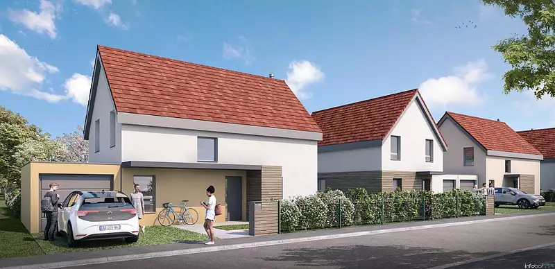 Découvrez sans plus tarder nos 9 maisons neuves individuelles de 100 m² à Wittenheim, situées à seulement 9km de Mulhouse. Nichées dans un quartier paisible et à proximité de toutes le commodités telles que des épiceries, des centres commerciaux, un collège et des services médicaux, nos maisons offrent un cadre de vie idéal.