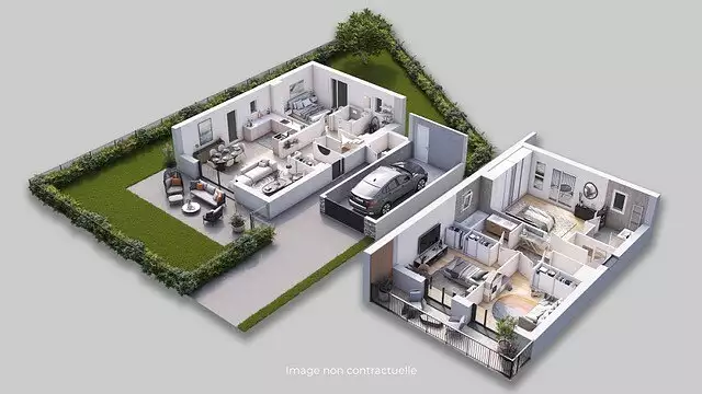 Chaque villa dispose de son propre terrain cadastré, d'un jardin privatif, d'un garage et d'une place de stationnement. Vous profiterez de généreux volumes comprenant 4 chambres, 2 salles de bains et des espaces de vie lumineux.