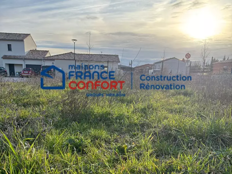 Terrain proposé par un partenaire foncier selon disponibilités et autorisation de publicité et sélectionné par le constructeur en vue de construire une maison neuve avec un contrat de construction de maison individuelle, dans le cadre de la loi du 10/12/1990. Assurances et garanties du constructeur (RC professionnelle, décennale, dommage ouvrage, garantie de remboursement de l'acompte, livraison à prix et délai convenu) : HEXAOM Services est enregistré auprès de l'ORIAS en tant que Courtier en financement, Niveau 1, sous le numéro 14001345.