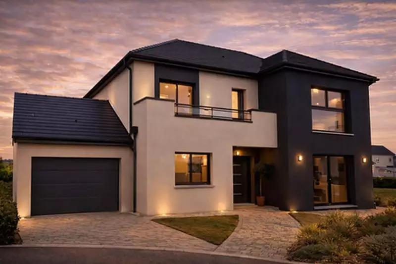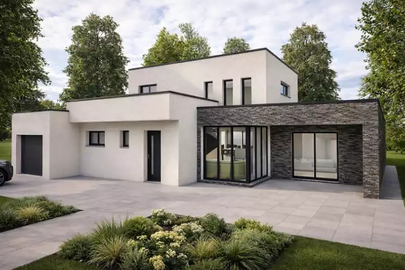 Implantée sur un terrain de 500 m², cette maison contemporaine de 120 m² habitables offre des volumes généreux et une distribution idéale pour une vie de famille confortable.