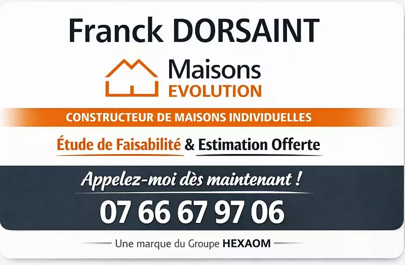 Terrain proposé par un partenaire foncier selon disponibilités et autorisation de publicité et sélectionné par le constructeur en vue de construire une maison neuve avec un contrat de construction de maison individuelle, dans le cadre de la loi du 10/12/1990. Assurances et garanties du constructeur (RC professionnelle, décennale, dommage ouvrage, garantie de remboursement de l'acompte, livraison à prix et délai convenu) : https://www.maisonsevolution.fr/mentions-legales/.