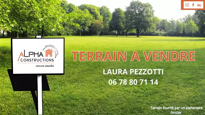 Terrain proposé par un partenaire foncier selon disponibilité dans le cadre d’un projet de construction avec Alpha Constructions. Les descriptions, photographies, surfaces et prix illustrant l’annonce sont fournies à titre indicatif et ne sont pas contractuels. Non soumis au DPE.