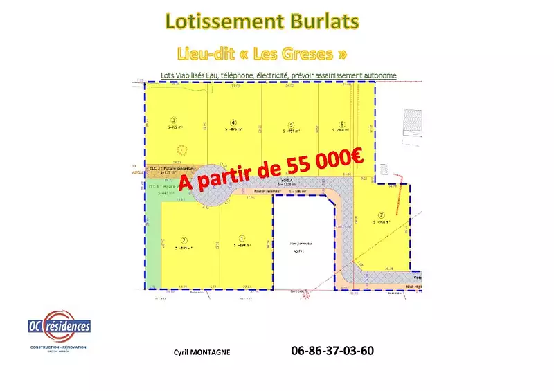 Oc Résidences, constructeur de maisons individuelles depuis 1983, vous propose ce terrain plat, viabilisé, prévoir assainissement autonome, situé dans un petit lotissement intimiste à 7 minutes d'un supermarché de Castres avec ses commerces (boulangerie, coiffeur, fleuriste, pharmacie, opticien, tabac/presse, etc). Vous profiterez des avantages de la taxe foncière du village de Burlats, tout en étant aux portes de Castres.