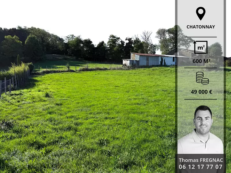 49 000 Euros. Vu pour vous beau terrain plat d'environ 600 M² sur la commune de CHATONNAY. Exposition SUD.