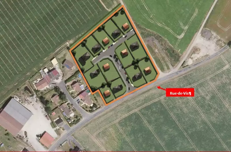 Terrain proposé par un partenaire foncier selon disponibilités et autorisation de publicité et sélectionné par le constructeur en vue de construire une maison neuve avec un contrat de construction de maison individuelle, dans le cadre de la loi du 10/12/1990. Assurances et garanties du constructeur (RC professionnelle, décennale, dommage ouvrage, garantie de remboursement de l'acompte, livraison à prix et délai convenu) : https://www.maisons-france-confort.fr/mentions-legales/. HEXAOM Services est enregistré auprès de l'ORIAS en tant que Courtier en financement, Niveau 1, sous le numéro 14001345.