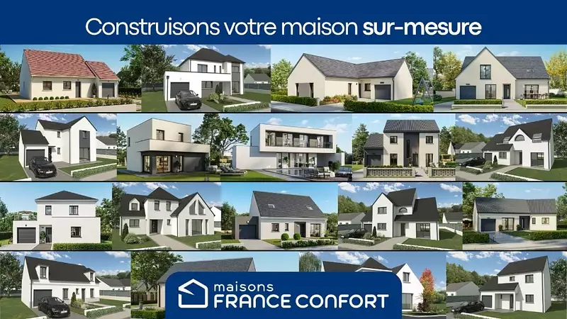 Terrain proposé par un partenaire foncier selon disponibilités et autorisation de publicité et sélectionné par le constructeur en vue de construire une maison neuve avec un contrat de construction de maison individuelle, dans le cadre de la loi du 10/12/1990. Assurances et garanties du constructeur (RC professionnelle, décennale, dommage ouvrage, garantie de remboursement de l'acompte, livraison à prix et délai convenu) : https://www.maisons-france-confort.fr/mentions-legales/. HEXAOM Services est enregistré auprès de l'ORIAS en tant que Courtier en financement, Niveau 1, sous le numéro 14001345.