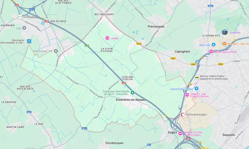 Située au cœur de la région des Weppes, Ennetières-en-Weppes est à seulement 10 km de Lille, ce qui permet de profiter des avantages de la ville tout en habitant dans un environnement plus calme et verdoyant. Sa proximité avec des communes comme Englos, Armentières et Lomme renforce son attrait pour les familles et les professionnels.