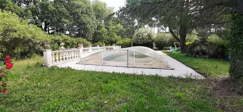 Ce terrain viabilisé avec une emprise au sol de 99m² autorisée, bénéficie d'une exposition plein sud et possède déjà une piscine. Un assainissement individuel est à prévoir.