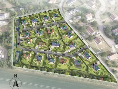 Terrain proposé par un partenaire foncier selon disponibilités et autorisation de publicité et sélectionné par le constructeur en vue de construire une maison neuve avec un contrat de construction de maison individuelle, dans le cadre de la loi du 10/12/1990.