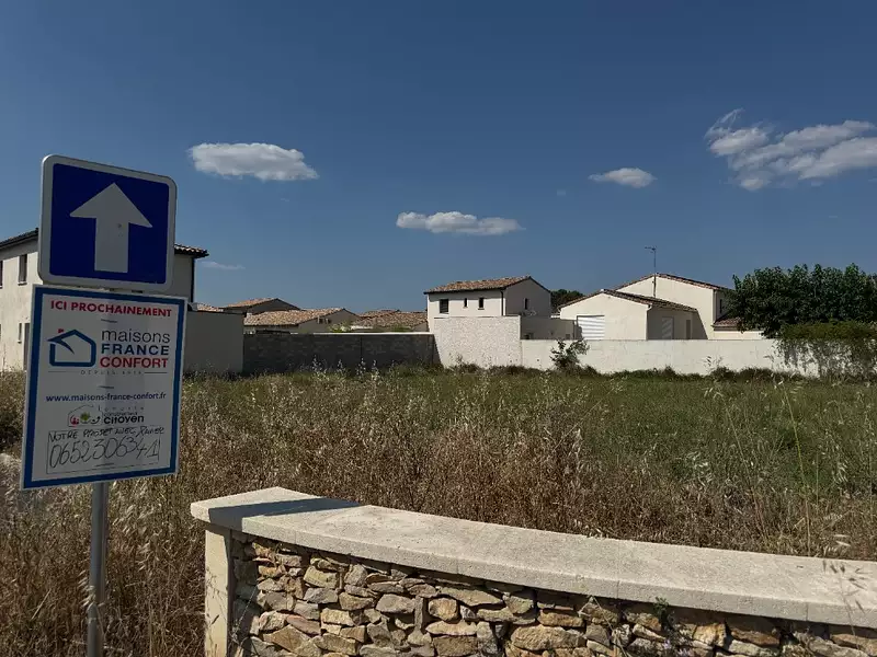 Terrain proposé par un partenaire foncier selon disponibilités et autorisation de publicité et sélectionné par le constructeur en vue de construire une maison neuve avec un contrat de construction de maison individuelle, dans le cadre de la loi du 10/12/1990. Assurances et garanties du constructeur (RC professionnelle, décennale, dommage ouvrage, garantie de remboursement de l'acompte, livraison à prix et délai convenu) : https://www.maisons-france-confort.fr/mentions-legales/. HEXAOM Services est enregistré auprès de l'ORIAS en tant que Courtier en financement, Niveau 1, sous le numéro 14001345.