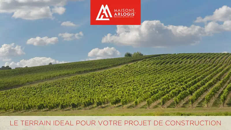 Les annonces de terrains constructibles sont sélectionnées auprès de nos partenaires fonciers selon disponibilités et autorisation de publicité en vue de construire une maison neuve avec un Contrat de Construction de Maison Individuelle dans le cadre de la loi du 19/12/1990. Ces derniers sont soit des professionnels dûment habilités à la transaction immobilière, soit des particuliers. Les terrains sélectionnés sont disponibles à la date de la première parution de l'annonce. En aucun cas Maisons ARLOGIS ou ses collaborateurs ne sont propriétaires des terrains, ne jouent un rôle d'intermédiation ou de négociation sur la transaction et ne participent à la vente. Prix indiqués par nos partenaires fonciers. Visuel d'illustration. Les annonces de terrains constructibles sont sélectionnées auprès de nos partenaires fonciers selon disponibilités et autorisation de publicité en vue de construire une maison neuve avec un Contrat de Construction de Maison Individuelle dans le cadre de la loi du 19/12/1990. Ces derniers sont soit des professionnels dûment habilités à la transaction immobilière, soit des particuliers. Les terrains sélectionnés sont disponibles à la date de la première parution de l’annonce. En aucun cas Maisons ARLOGIS ou ses collaborateurs ne sont propriétaires des terrains, ne jouent un rôle d’intermédiation ou de négociation sur la transaction et ne participent à la vente. Prix indiqués par nos partenaires fonciers