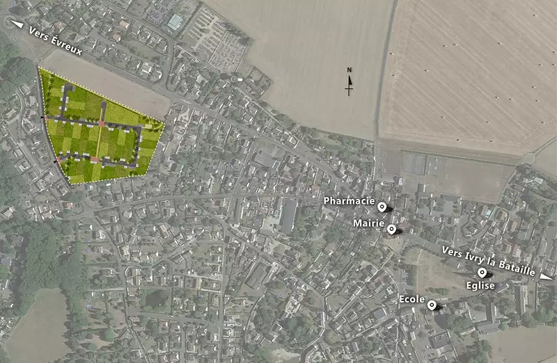 À dix minutes : gare (Bueil), écoles, tennis, boulangerie, bureau de poste, boucherie-charcuterie et supérette. Accès autoroute A13 et nationales N13, N154 et N12 à 17 km. Évreux à 23 km.