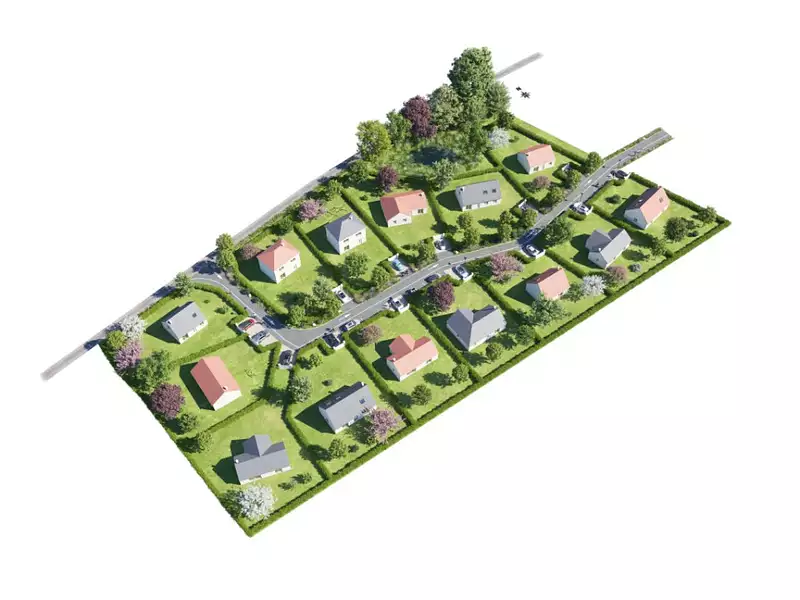 Terrain proposé par un partenaire foncier selon disponibilités et autorisation de publicité et sélectionné par le constructeur en vue de construire une maison neuve avec un contrat de construction de maison individuelle, dans le cadre de la loi du 10/12/1990. . HEXAOM Services est enregistré auprès de l'ORIAS en tant que Courtier en financement, Niveau 1, sous le numéro 14001345.