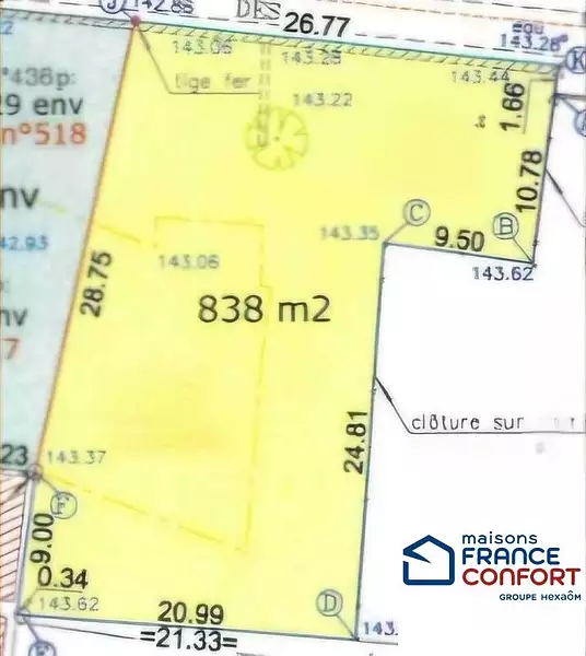 Terrain proposé par un partenaire foncier selon disponibilités et autorisation de publicité et sélectionné par le constructeur en vue de construire une maison neuve avec un contrat de construction de maison individuelle, dans le cadre de la loi du 10/12/1990.