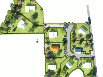 Résidence de 11 terrains à bâtir vendus bornés, viabilisés, tout à l'égout, électricité, télécom sur la commune de HARFLEUR (76) situés Route d'Orcher. Les surfaces vont de 350 m2 à 627 m2.