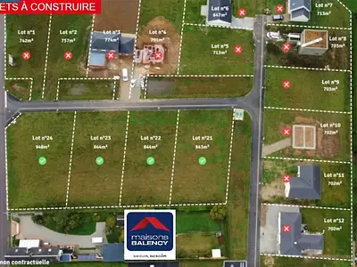 Terrain proposé par un partenaire foncier selon disponibilités et autorisation de publicité et sélectionné par le constructeur en vue de construire une maison neuve avec un contrat de construction de maison individuelle, dans le cadre de la loi du 10/12/1990.