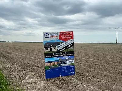 Terrain proposé par un partenaire foncier selon disponibilités et autorisation de publicité et sélectionné par le constructeur en vue de construire une maison neuve avec un contrat de construction de maison individuelle, dans le cadre de la loi du 10/12/1990.