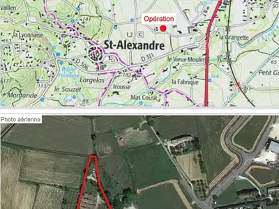 Terrain proposé par un partenaire foncier selon disponibilités et autorisation de publicité et sélectionné par le constructeur en vue de construire une maison neuve avec un contrat de construction de maison individuelle, dans le cadre de la loi du 10/12/1990.