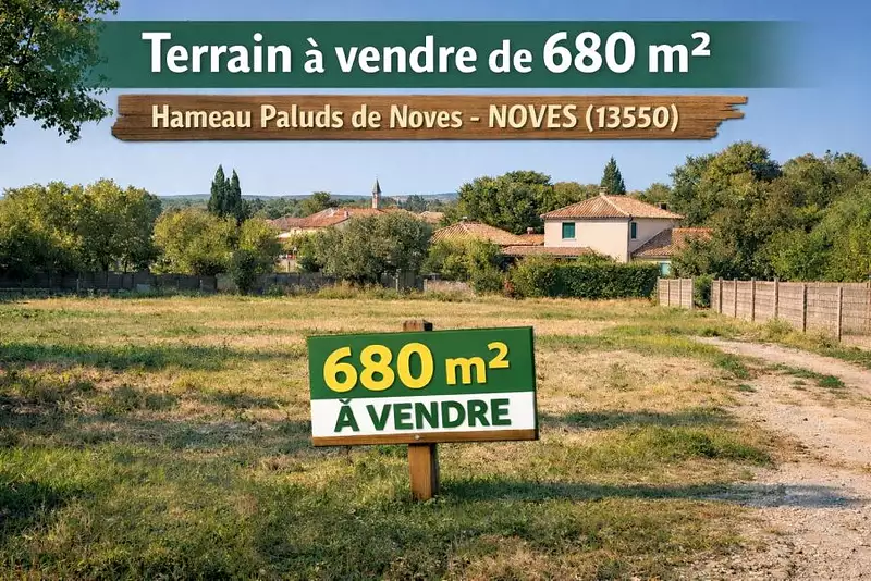 À Noves (13550), au cœur du hameau « Paluds de Noves », découvrez ce terrain à vendre d’une superficie généreuse de 680 m², proposé par Maisons Bati-France, idéal pour concrétiser votre projet de construction dans un environnement recherché. Situé en diffus, il offre un cadre de vie agréable tout en restant à proximité immédiate des commodités, des écoles et des transports, un véritable équilibre entre tranquillité résidentielle et praticité au quotidien. Sa surface confortable permet d’imaginer une maison adaptée à vos besoins, avec de belles possibilités d’aménagement extérieur pour profiter pleinement de votre futur espace de vie. Une opportunité rare sur le secteur de Noves pour donner vie à un projet sur mesure dans un cadre privilégié. Nous avons sélectionné ce terrain en partenariat avec nos aménageurs fonciers, dans le cadre d’un projet avec Maisons Bati-France.
