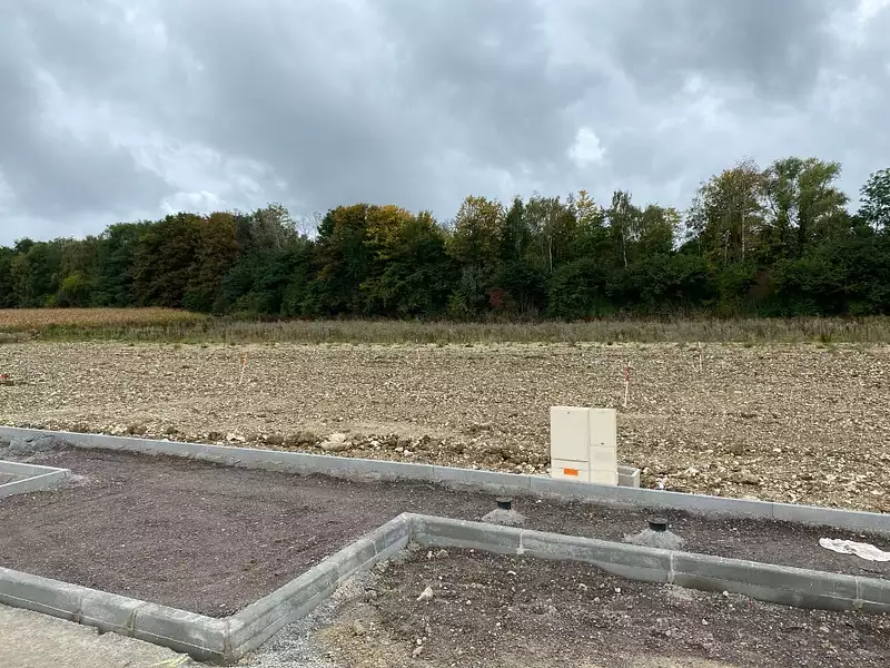 Terrain proposé par un partenaire foncier selon disponibilités et autorisation de publicité et sélectionné par le constructeur en vue de construire une maison neuve avec un contrat de construction de maison individuelle, dans le cadre de la loi du 10/12/1990. Assurances et garanties du constructeur (RC professionnelle, décennale, dommage ouvrage, garantie de remboursement de l'acompte, livraison à prix et délai convenu) : https://www.maisons-france-confort.fr/mentions-legales/. HEXAOM Services est enregistré auprès de l'ORIAS en tant que Courtier en financement, Niveau 1, sous le numéro 14001345.