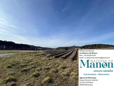 Terrain proposé par un partenaire foncier selon disponibilités et autorisation de publicité et sélectionné par le constructeur en vue de construire une maison neuve avec un contrat de construction de maison individuelle, dans le cadre de la loi du 10/12/1990. Assurances et garanties du constructeur (RC professionnelle, décennale, dommage ouvrage, garantie de remboursement de l'acompte, livraison à prix et délai convenu) : https://www.maisons-de-manon.fr/informations-legales/. HEXAOM Services est enregistré auprès de l'ORIAS en tant que Courtier en financement, Niveau 1, sous le numéro 14001345.