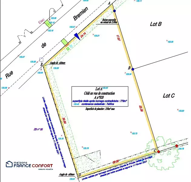 Terrain proposé par un partenaire foncier selon disponibilités et autorisation de publicité et sélectionné par le constructeur en vue de construire une maison neuve avec un contrat de construction de maison individuelle, dans le cadre de la loi du 10/12/1990.