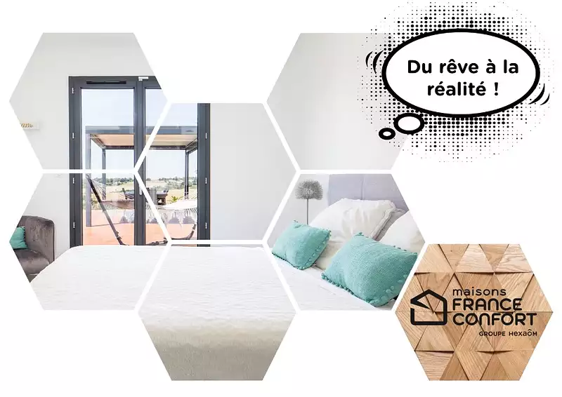 Terrain proposé par un partenaire foncier selon disponibilités et autorisation de publicité et sélectionné par le constructeur en vue de construire une maison neuve avec un contrat de construction de maison individuelle, dans le cadre de la loi du 10/12/1990. Assurances et garanties du constructeur (RC professionnelle, décennale, dommage ouvrage, garantie de remboursement de l'acompte, livraison à prix et délai convenu) : https://www.maisons-france-confort.fr/mentions-legales/. HEXAOM Services est enregistré auprès de l'ORIAS en tant que Courtier en financement, Niveau 1, sous le numéro 14001345.