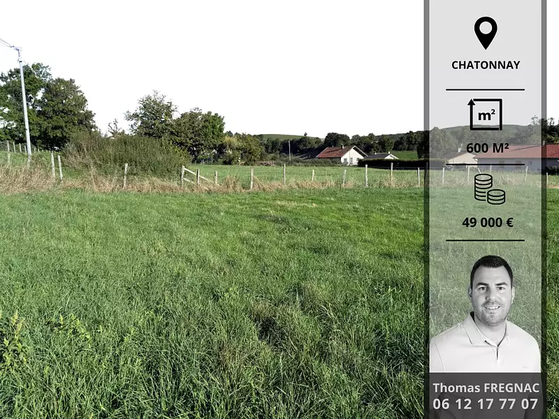 49 000 Euros. Vu pour vous beau terrain plat d'environ 600 M² sur la commune de CHATONNAY. Exposition SUD.