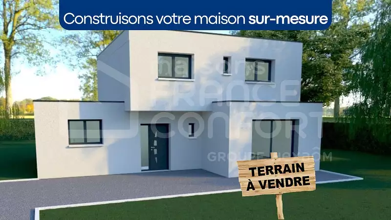 Terrain proposé par un partenaire foncier selon disponibilités et autorisation de publicité et sélectionné par le constructeur en vue de construire une maison neuve avec un contrat de construction de maison individuelle, dans le cadre de la loi du 10/12/1990. . HEXAOM Services est enregistré auprès de l'ORIAS en tant que Courtier en financement, Niveau 1, sous le numéro 14001345.