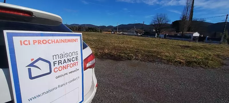 Terrain proposé par un partenaire foncier selon disponibilités et autorisation de publicité et sélectionné par le constructeur en vue de construire une maison neuve avec un contrat de construction de maison individuelle, dans le cadre de la loi du 10/12/1990. Assurances et garanties du constructeur (RC professionnelle, décennale, dommage ouvrage, garantie de remboursement de l'acompte, livraison à prix et délai convenu) : https://www.maisons-france-confort.fr/mentions-legales/. HEXAOM Services est enregistré auprès de l'ORIAS en tant que Courtier en financement, Niveau 1, sous le numéro 14001345.