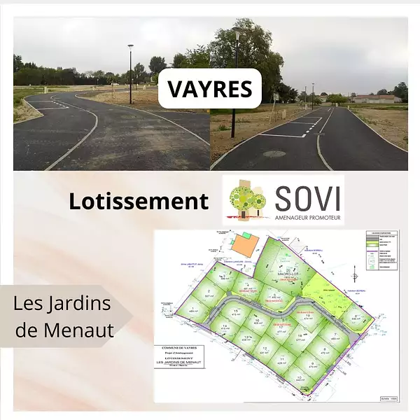 « Les Jardins de Menaut » est un lotissement de 19 lots entièrement viabilisés, de 405 à 577 m².