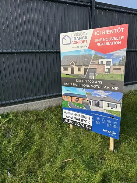 Terrain proposé par un partenaire foncier selon disponibilités et autorisation de publicité et sélectionné par le constructeur en vue de construire une maison neuve avec un contrat de construction de maison individuelle, dans le cadre de la loi du 10/12/1990. . HEXAOM Services est enregistré auprès de l'ORIAS en tant que Courtier en financement, Niveau 1, sous le numéro 14001345.