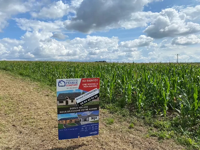 Terrain proposé par un partenaire foncier selon disponibilités et autorisation de publicité et sélectionné par le constructeur en vue de construire une maison neuve avec un contrat de construction de maison individuelle, dans le cadre de la loi du 10/12/1990. Assurances et garanties du constructeur (RC professionnelle, décennale, dommage ouvrage, garantie de remboursement de l'acompte, livraison à prix et délai convenu) : https://www.maisons-france-confort.fr/mentions-legales/. HEXAOM Services est enregistré auprès de l'ORIAS en tant que Courtier en financement, Niveau 1, sous le numéro 14001345.